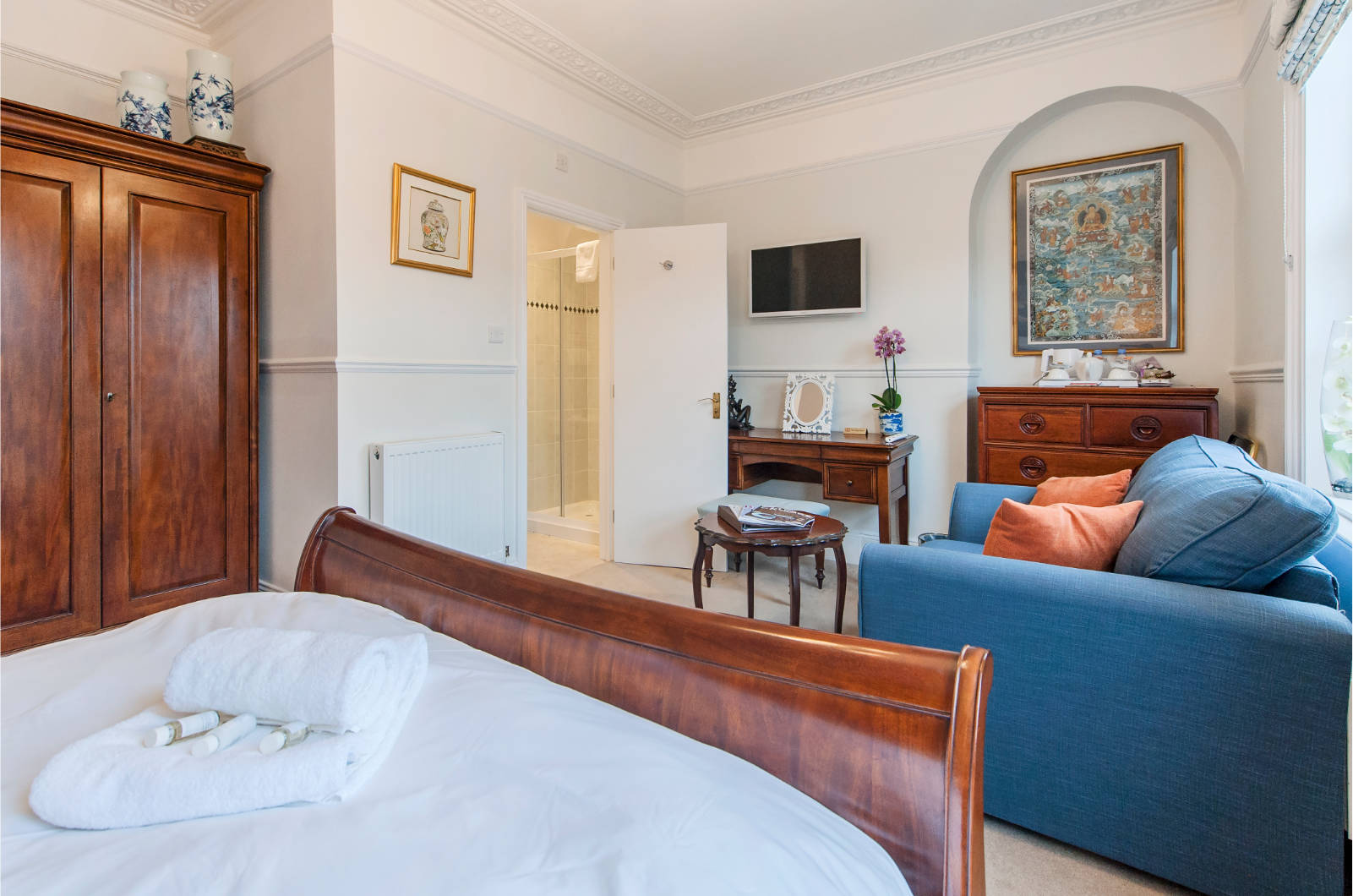 All rooms are individually themed with an elegant blend of English and Asian artwork where East meets West, fresh cotton bedlinen and modern facilities.